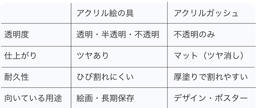 アクリル絵の具とアクリルガッシュの違い