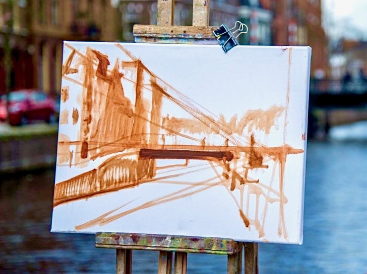 水を多めにして薄めて描けば水彩画風に描けます。