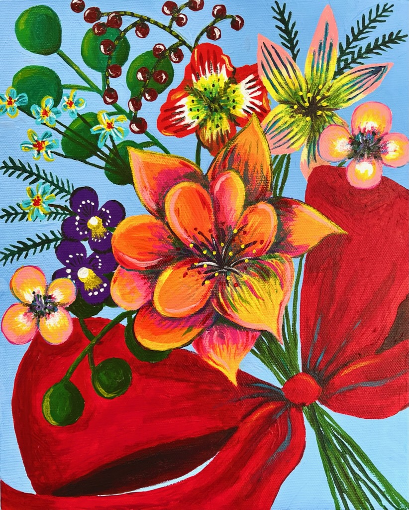 『フキちゃんのFlower bouquet』 金松 彩夏 (アクリル絵の具)