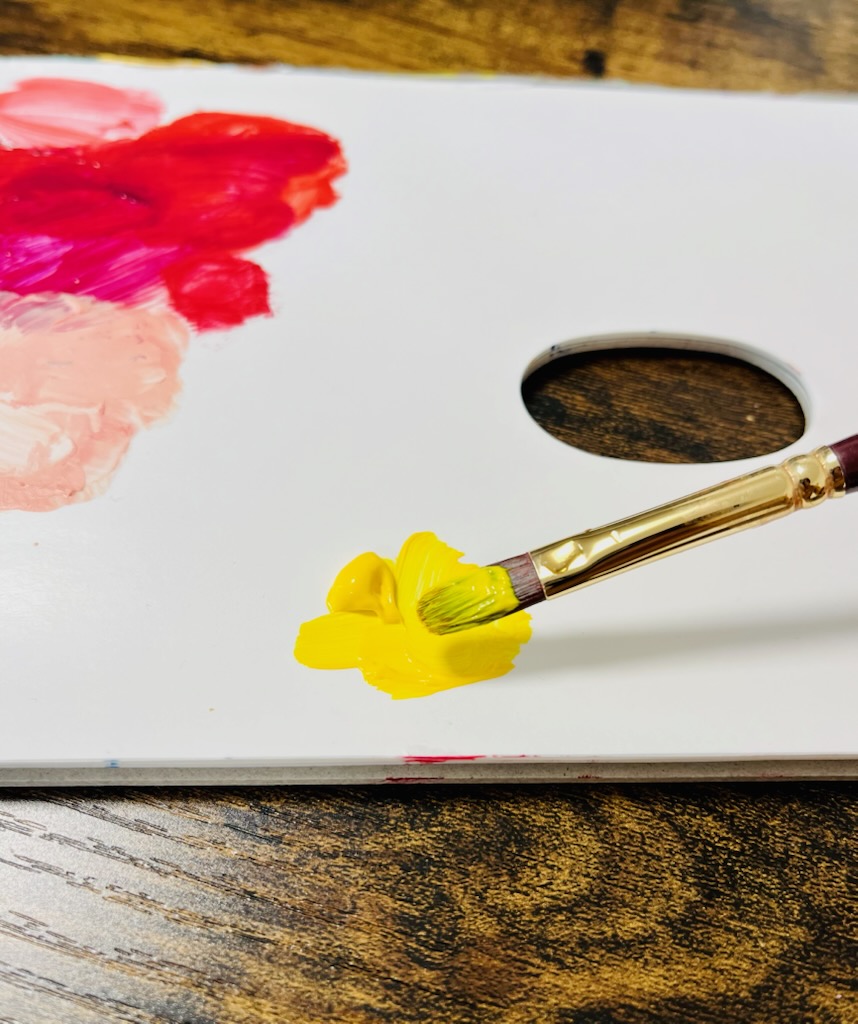 パレットにアクリル絵の具を出す
