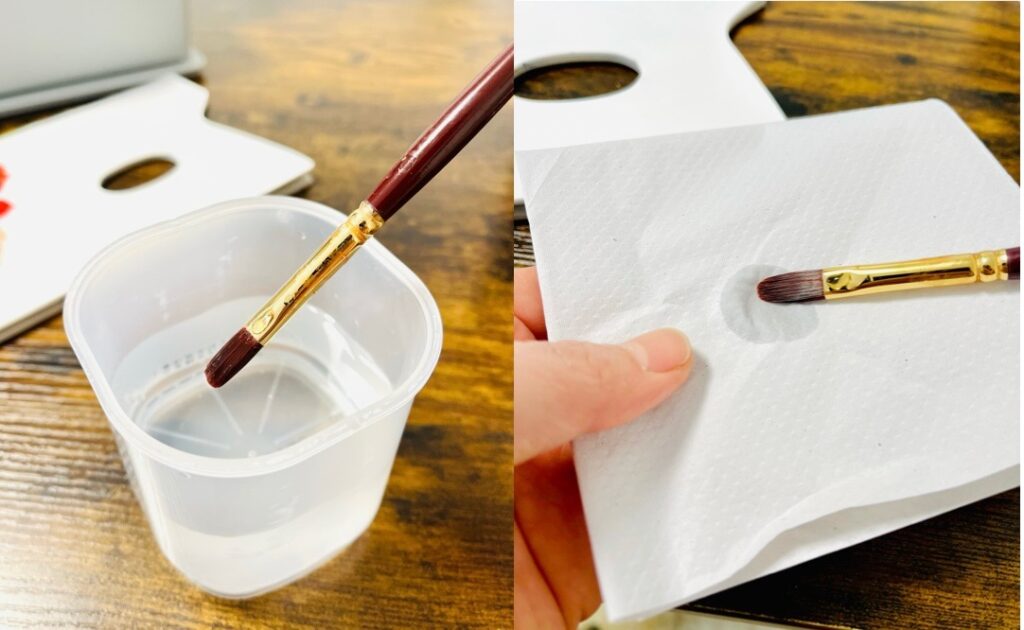 水分が多すぎると絵の具が薄くなってしまうので、